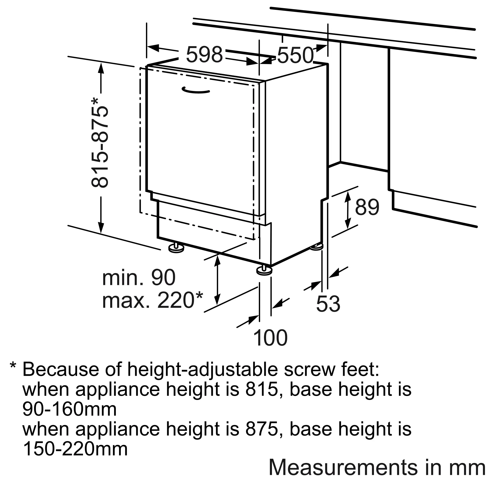 Height of the appliance